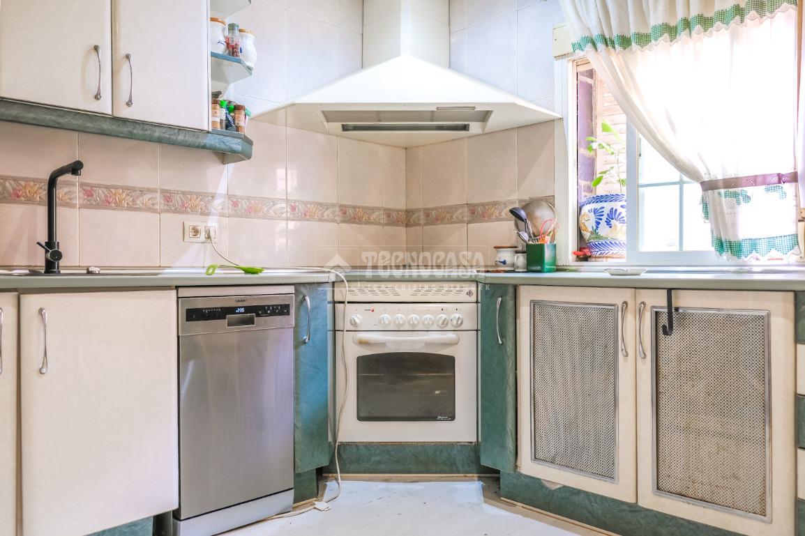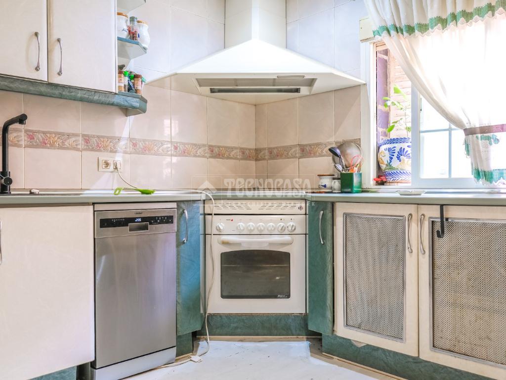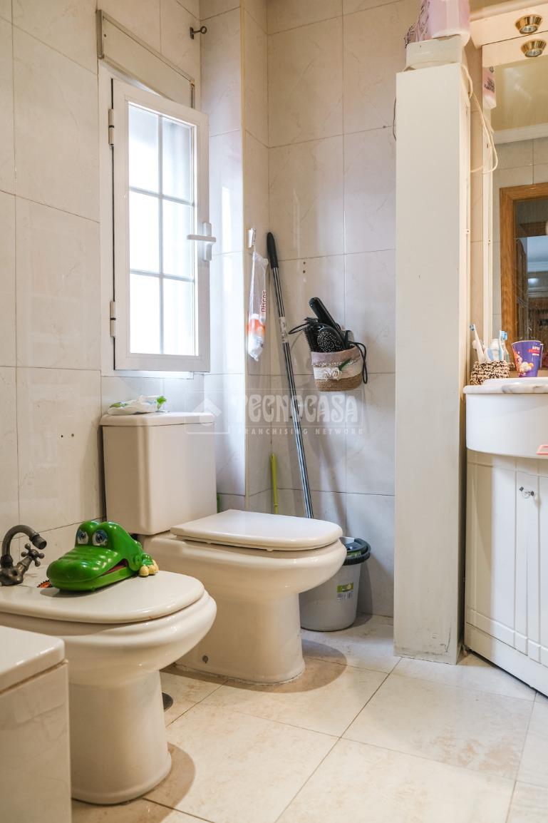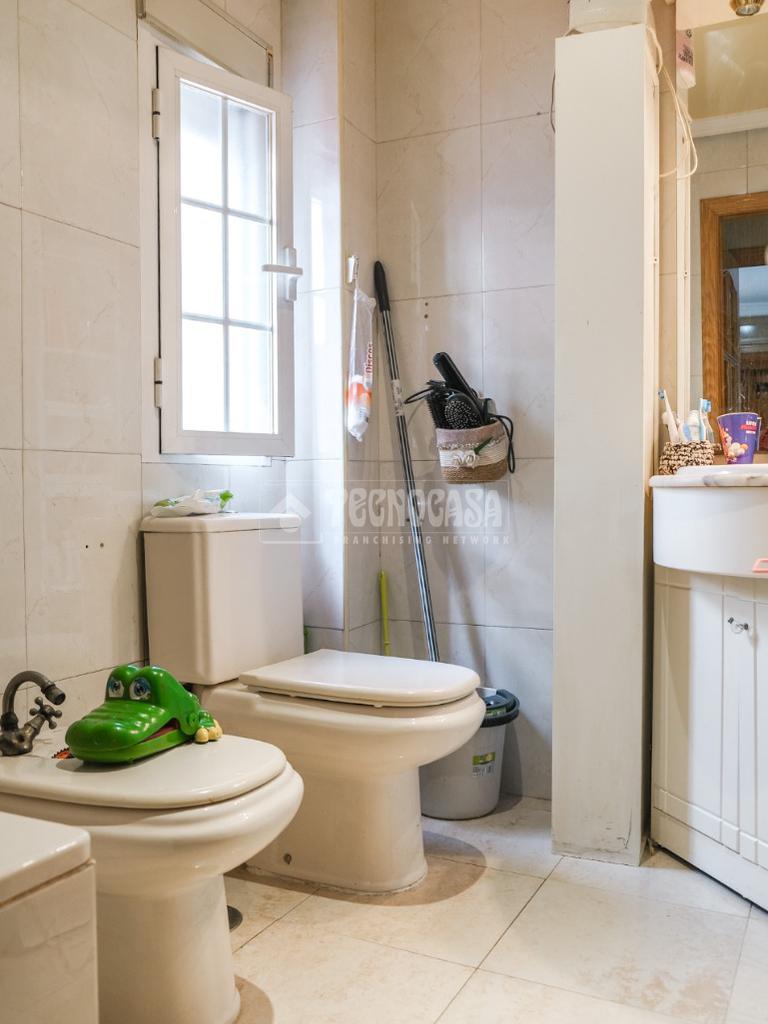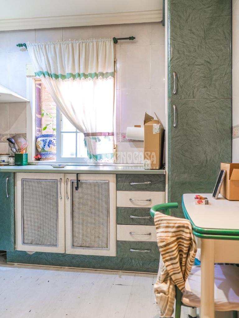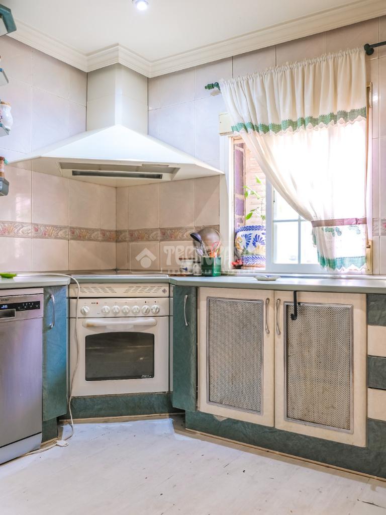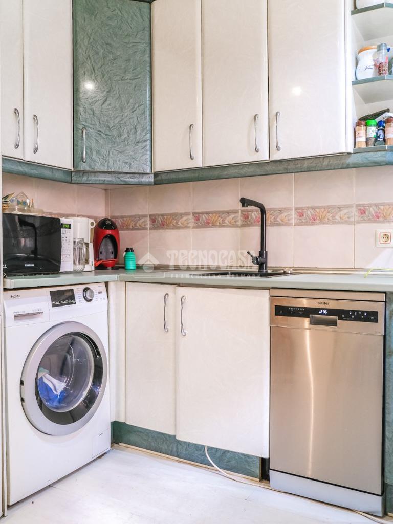Al entrar, nos encontramos con un amplio salón equipado con aire acondicionado, ideal para mantenerse fresco durante los cálidos veranos. La gran cocina ofrece mucho espacio para cocinar, mientras que la calefacción de gas mantiene la vivienda acogedora en invierno. Las ventanas Climalit garantizan la eficiencia energética y el piso incluye una terraza.